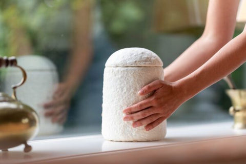 De urn is ook perfect om binnen te zetten, als blijvende en mooie herinnering. Hij wordt alleen biologisch afgebroken als hij in de grond wordt begraven, dus als je hem thuis bewaart, blijft hij volledig intact. Kies wat goed voelt: een levende herinnering thuis of een natuurlijk geschenk aan de natuur.