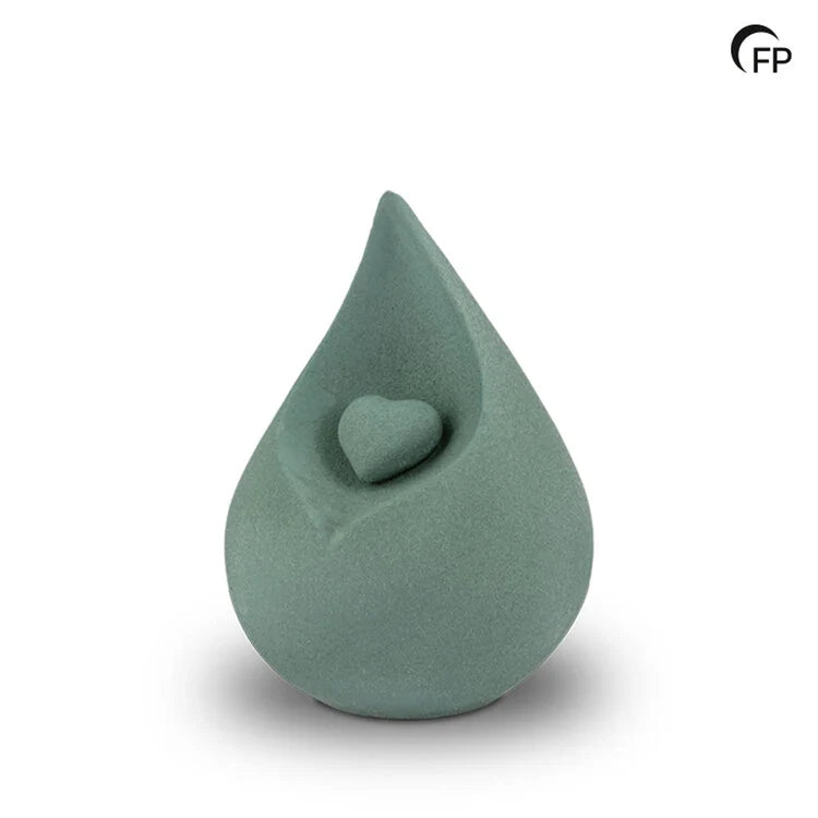 De Celest-urn onderscheidt zich door haar kenmerkende druppelvorm, een ontwerp dat eenvoud en kracht combineert. De vorm symboliseert een traan voor het verlies met in het midden een subtiel hartje dat staat voor eeuwige liefde. De urn is vervaardigd uit biologische klei, die bestaat uit natuurlijke grondstoffen en hierdoor volledig afbreekbaar is. De afwerking van de urn is zorgvuldig uitgevoerd met plantaardige oliën, welke volledig oplosbaar zijn in water, waardoor er geen schadelijke resten achterblijven. De Bio Celest urn voldoet aan de eisen van GreenLeave en draagt met trots het ‘GreenLeave Approved’ label.