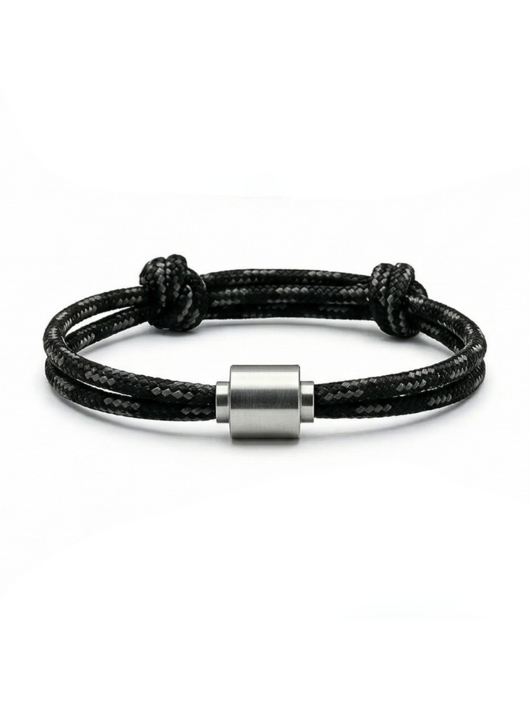 De Jubilee herenarmband heeft een stoere, tijdloze uitstraling en is geïnspireerd op een robuuste vriendschapsarmband. Uitgevoerd in zilver en grijs, past dit sieraad bij elke stijl. Dankzij de verstelbare knoopsluiting is de armband comfortabel om dagelijks te dragen.