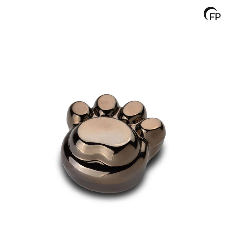 De goudkleurige, mat keramische dierenurn in de vorm van een dierenpoot is een stijlvolle en subtiele herinnering aan een geliefd huisdier. Dit compacte model past dankzij zijn ingetogen ontwerp harmonieus in ieder interieur en is tevens verkrijgbaar in zwart, wit en zilvergrijs.