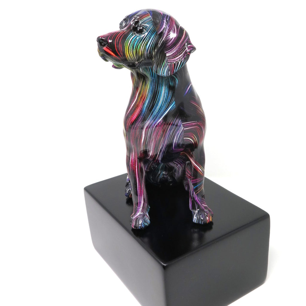 Deze Labradorurn valt op door zijn zeer moderne uitstraling, nobel en kleurrijk met een grote Labradorfiguur.