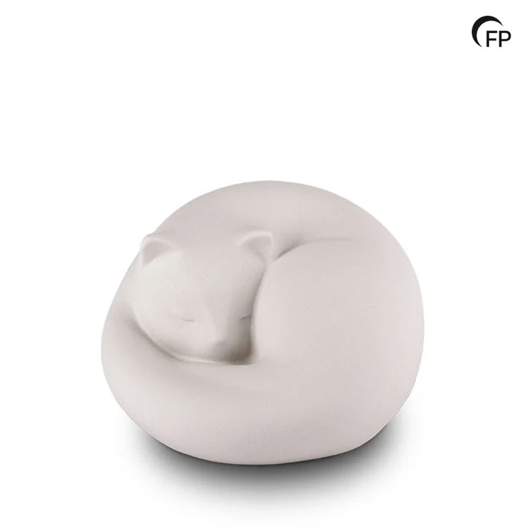 Deze porseleinen dierenurn, in de vorm van een slapende kat, is een prachtig kunstwerk dat mooi staat in elk decor. De houding van de kat is herkenbaar voor iedere kattenliefhebber. De zachte vormen zorgen voor een zachte en vriendelijke uitstraling. Deze urn is dierenurn is ook leverbaar in het donkergrijs.
