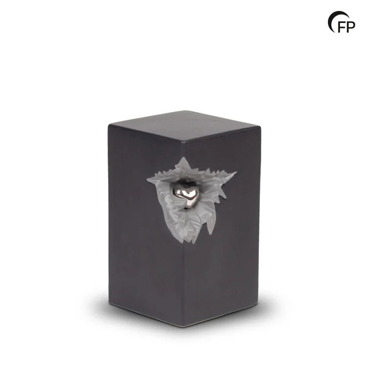 This modern urn is made from Gres Porcelain. (rock hard, high-quality porcelain) The mixture consists of white clay, sand and melting agents. The urn is also frost and scratch resistant. (suitable for outdoors) Equipped with a simple stainless steel screw closure.